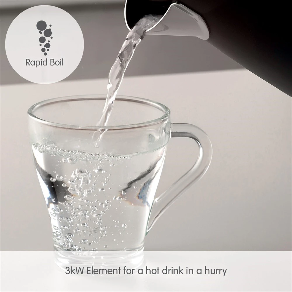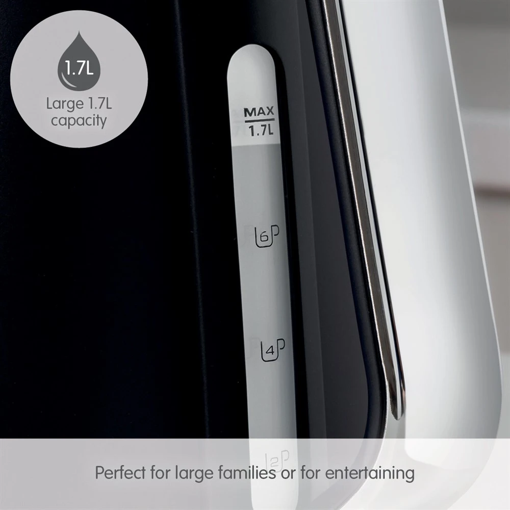It has a 1.7l capacity and a 3kW element so that you get your hot drink quickly.