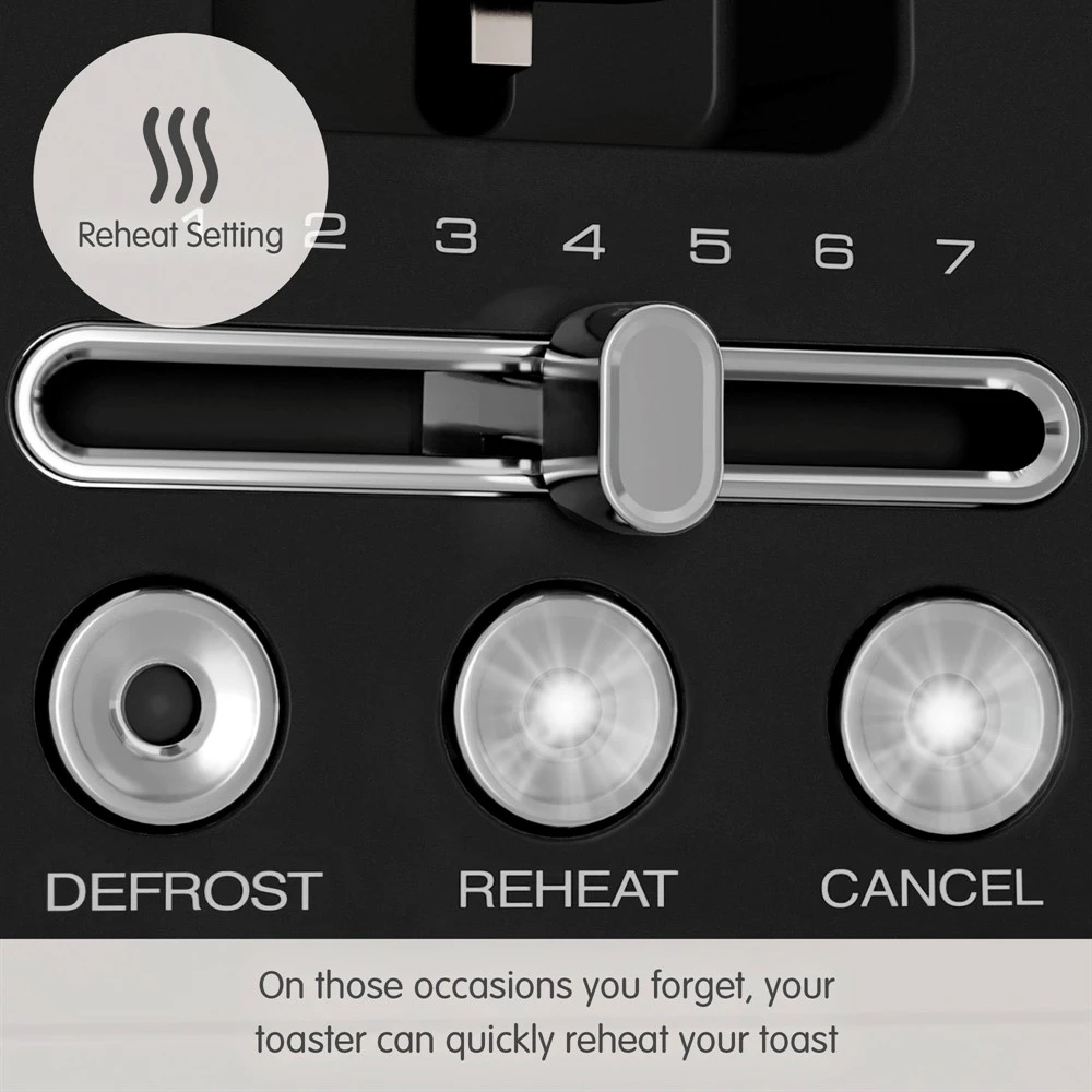 We have also included a ‘reheat’ setting, so you can quickly warm up your toast if you happen to forget about it.Â